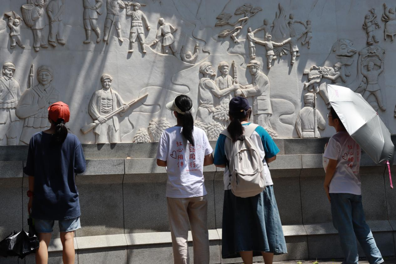 此次活动分为参观游览和实地调研两部分。实践团成员从沅陵龙舟广场拾级而上,依次参观了牌坊浮雕、纪念亭、风雨长廊、纪念塔等建筑。通过石碑上记录的文字,实践团成员们了解到二十世纪五十年代的那段峥嵘岁月,感受到烈士们灼热的信念信仰和炽热的家国情怀。在风雨长廊,实践团成员通过走访调研当地老人探寻湘西剿匪烈士纪念园的历史,其中一位亲历者向队员们讲述了纪念碑的由来———纪念碑的石材是由当年贺龙元帅怒砸“永远儆戒”的国耻碑裁截而成,史称“辰州教案”。