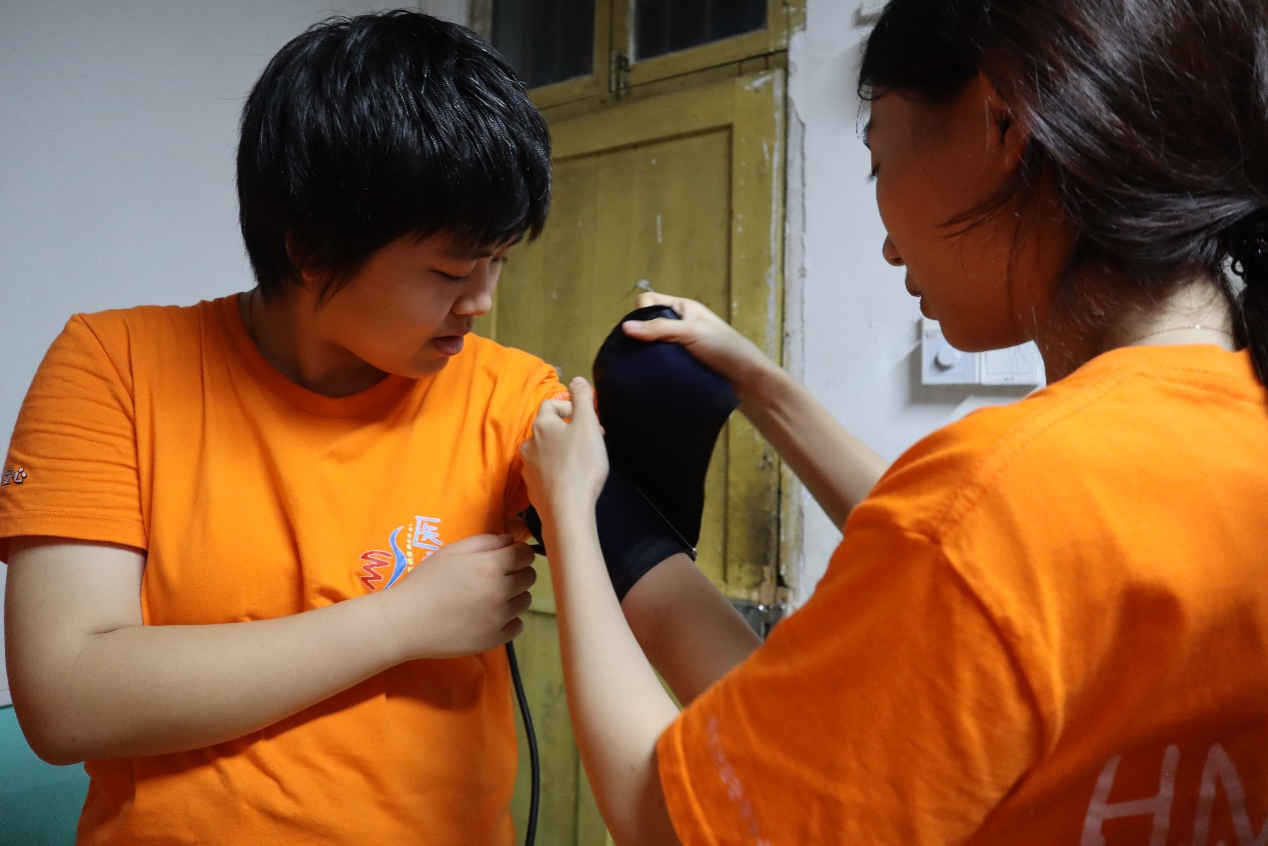 此次培训由健康咨询组组长刘婷带领展开,在理论与实践结合的前提下,向队员们介绍如何测量血压、血糖。成员们认真学习并做好了培训记录,同时在组长的技术指导下进行了实际操作,并最终熟练掌握技术,为即将到来的义诊服务做好了准备。