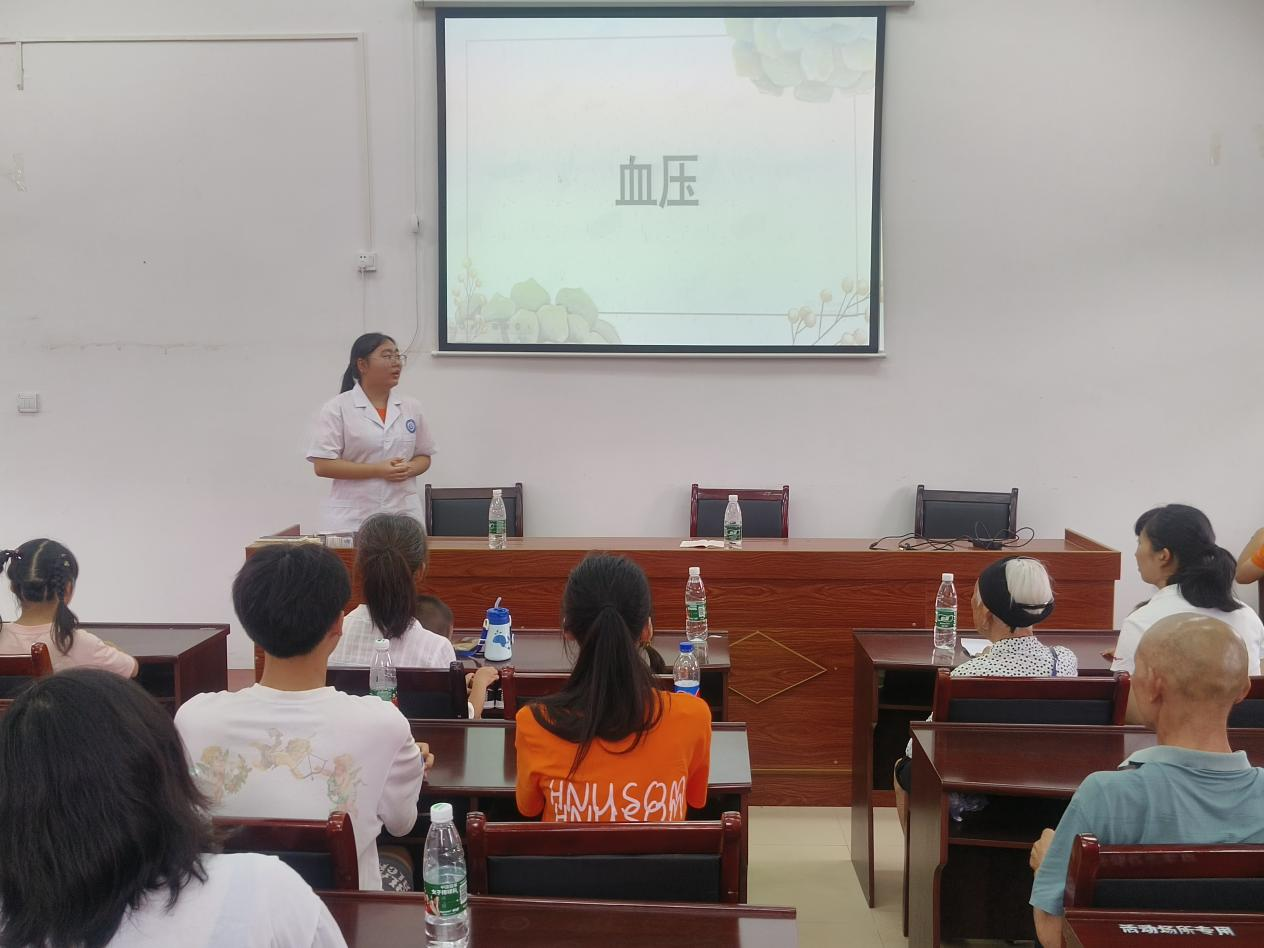 7月14日,金沙官网“乡伴童心”赴沅陵陈家滩暑期社会实践团于陈家滩村委会举行健康宣讲活动。此次宣讲以普及血压、血糖、晒伤和中暑的相关知识为目的,由健康专题组组长刘婷担任主讲人,团队部分成员和陈家滩部分村民参与此次活动。
