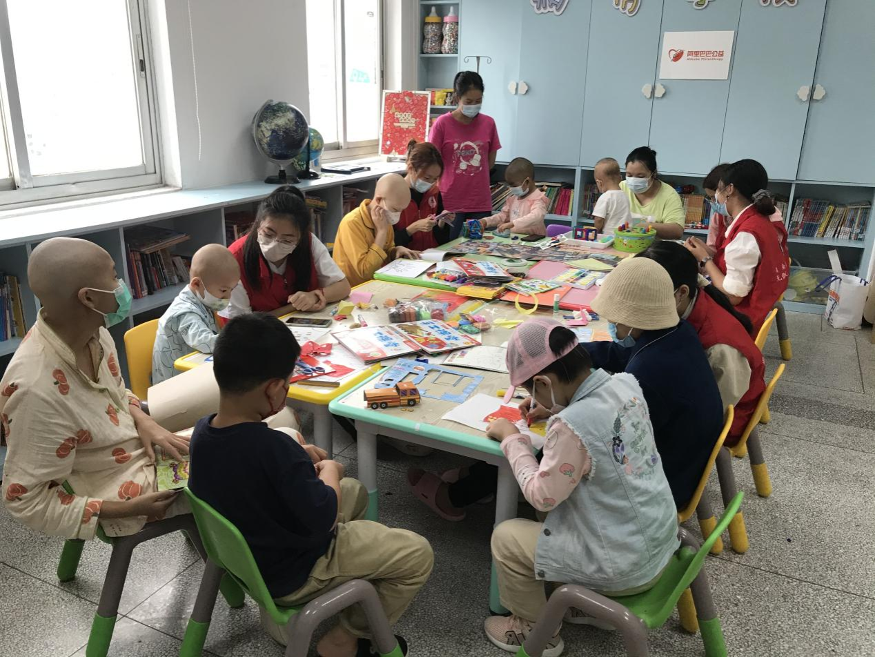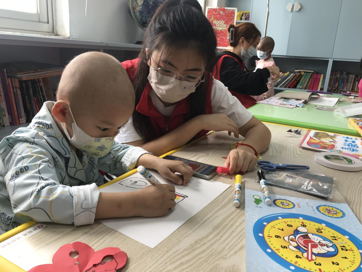 活动开始前,志愿者提前熟悉了活动的主题、流程以及工作内容,为活动的顺利展开做好了充分准备。在与医院活动负责人沟通好注意事项后,志愿者开始此次的志愿活动。活动内容包括陪伴白血病儿童折纸、画画、玩游戏等。活动初期,小朋友们因害羞显得有些拘谨,但在志愿者的耐心引导下,孩子们逐渐敞开心扉,认真投入到画画、折纸活动中。活动结束后,大家互相展示自己的作品,活动室充满孩子们的欢声笑语。