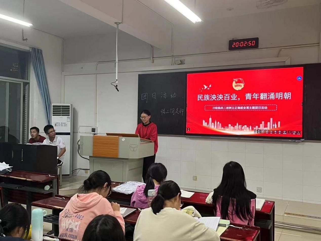 10月16日晚上,金沙官网23级临床二班在仁医楼205举办了主题为“兼顾国与家,树立正确就业价值观”的团日活动,主讲人为冯军和陈铁锤,临床二班部分同学参与此次活动。