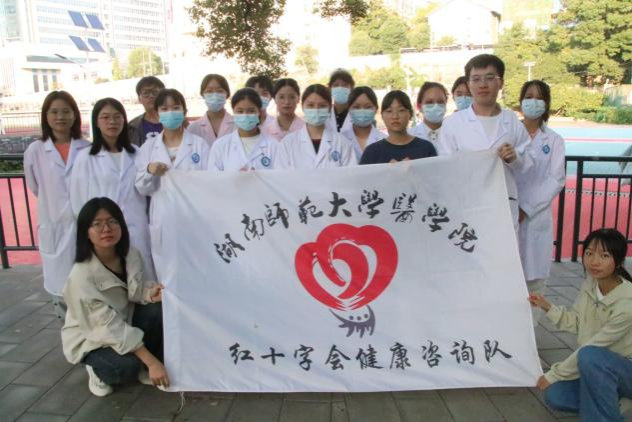 为加强同学们健康生活的意识,10月15日下午,金沙官网红十字会健康咨询队在金沙官网主干道举办了“爱之翼,守护健康在行动”志愿服务活动,健康咨询队全体成员参与此次活动。