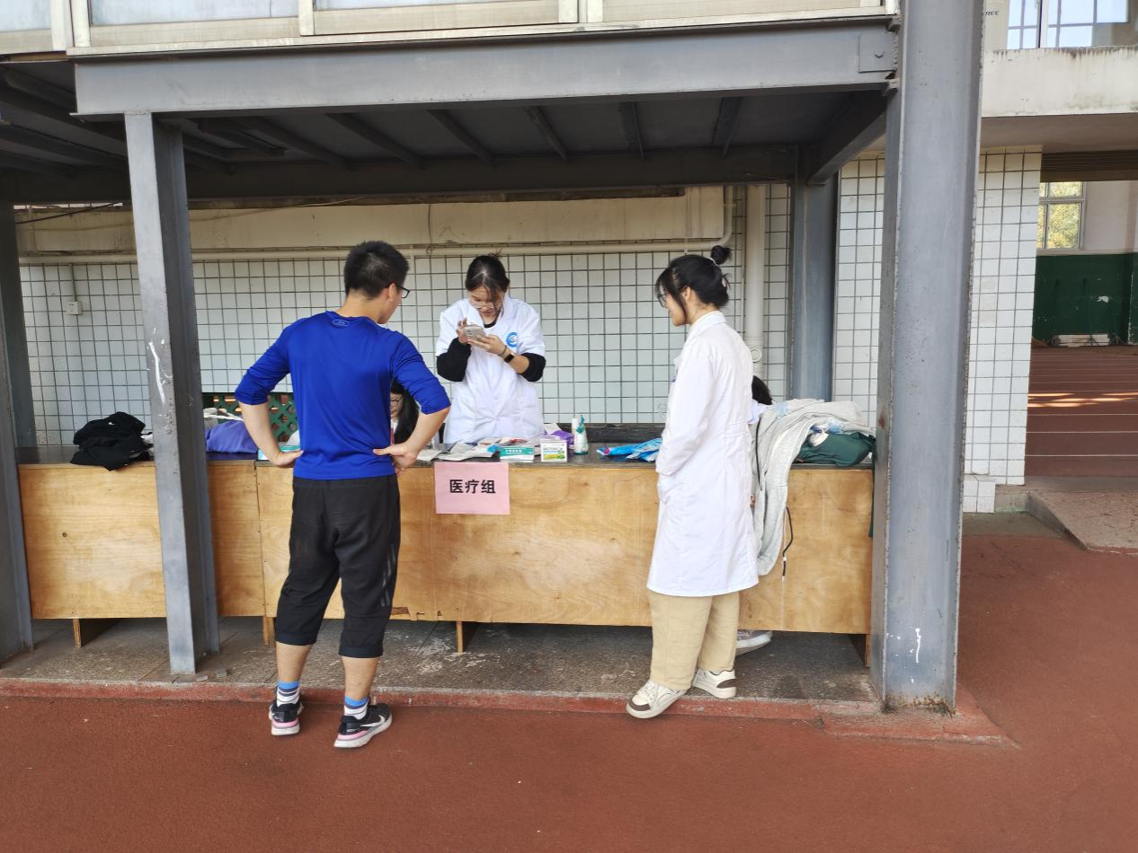 为了推动我校第二届“T-ball新生杯”比赛的顺利开展,保障参赛人员与观众的安全,金沙官网学生社团管理服务中心心理健康协会于10月21日在我校体育学院田径场举办“运动拼搏精神,医疗绿盾护航”志愿者活动。