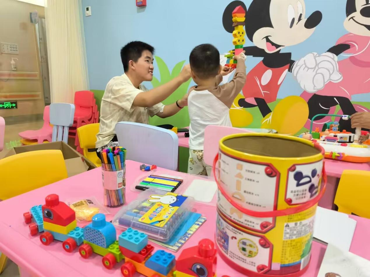 为了活动能够顺利开展,志愿者们提前到达迪士尼小屋,在负责人的介绍下熟悉活动的具体流程并做好准备工作。在对孩子们进行了初步的了解之后,志愿者们便开始耐心地引导他们进行拼图、搭积木、折纸等益智游戏,鼓励他们多动手、多交流,团结协作,共同完成游戏。此后,志愿者们整理好小屋内物品,与孩子们进行了告别。