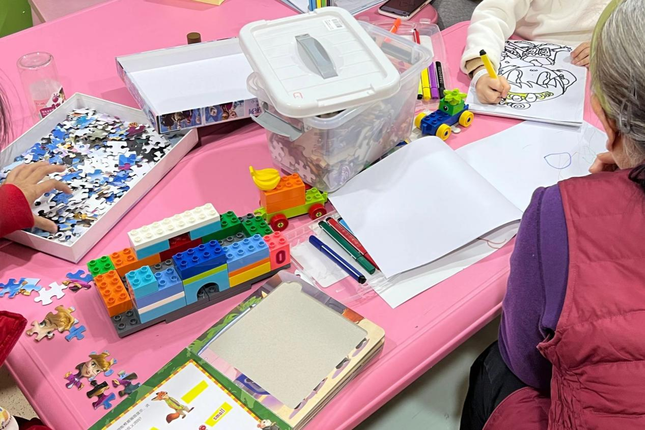 志愿者们在活动开始前做好了充分的准备,提前熟悉了内容流程并与医院负责人进行了沟通,确保其顺利地开展。在活动中,志愿者们陪伴着小朋友一起拼图,绘画和搭积木。他们不断给予孩子们鼓励,积极耐心引导,现场气氛变得温馨愉悦,充满了欢声笑语。小朋友们逐渐投入,耐心地拼出图案、认真地为线条画上色、用积木富有创意地搭出各式物品,享受着活动带来的快乐。