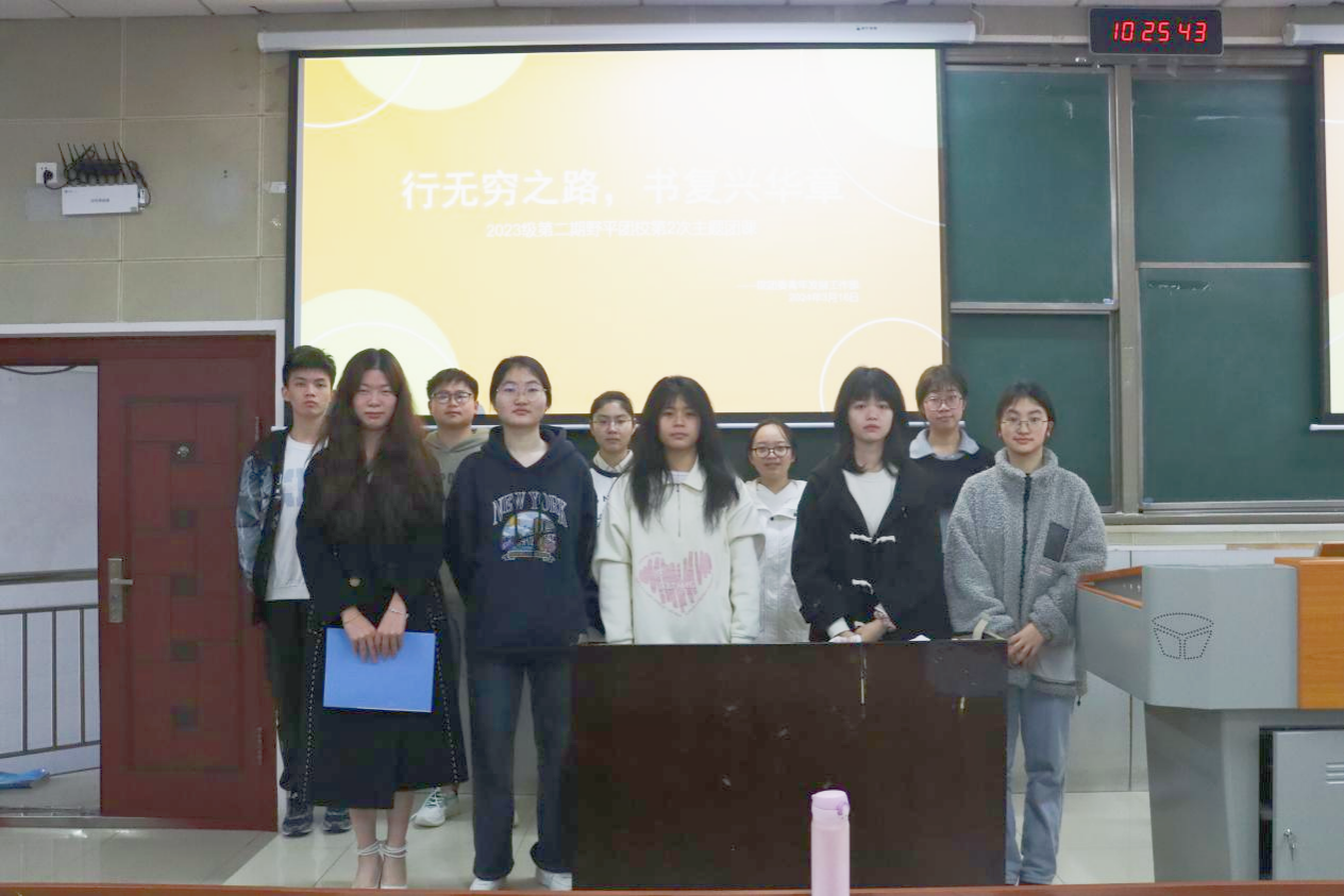 3月16日,金沙官网团委青年发展工作部于仁医楼406教室举行2023级第二期野平团校“行无穷之路,书复兴华章”第二次主题团课,活动由金沙官网团委青年发展工作部志愿者盛羽蝶主持,青年发展工作部成员及第二期野平团校学生共同参与。
