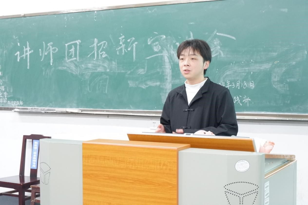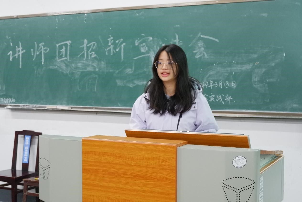 负责人廖曼丽为同学们展示了讲师团的丰富活动,如为不同院的同学们宣讲健康知识、主持野平团校课程等,鼓励大家积极加入讲师团。随后,讲师团成员杨思婕和杨湛先后发言。杨思婕介绍了讲师团所宣讲的五大板块的知识,向同学们普及了常见意外的判断方法和相应的急救措施,并且概述了讲师团的主要工作,让大家对其有了更多了解。杨湛则分步讲解了海姆立克急救法并进行了现场展示,体现出讲师团成员对健康知识和急救措施的熟练掌握。