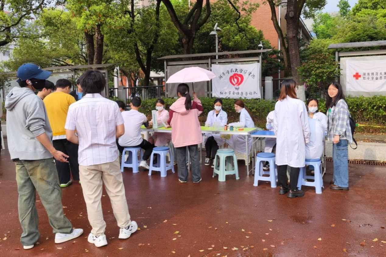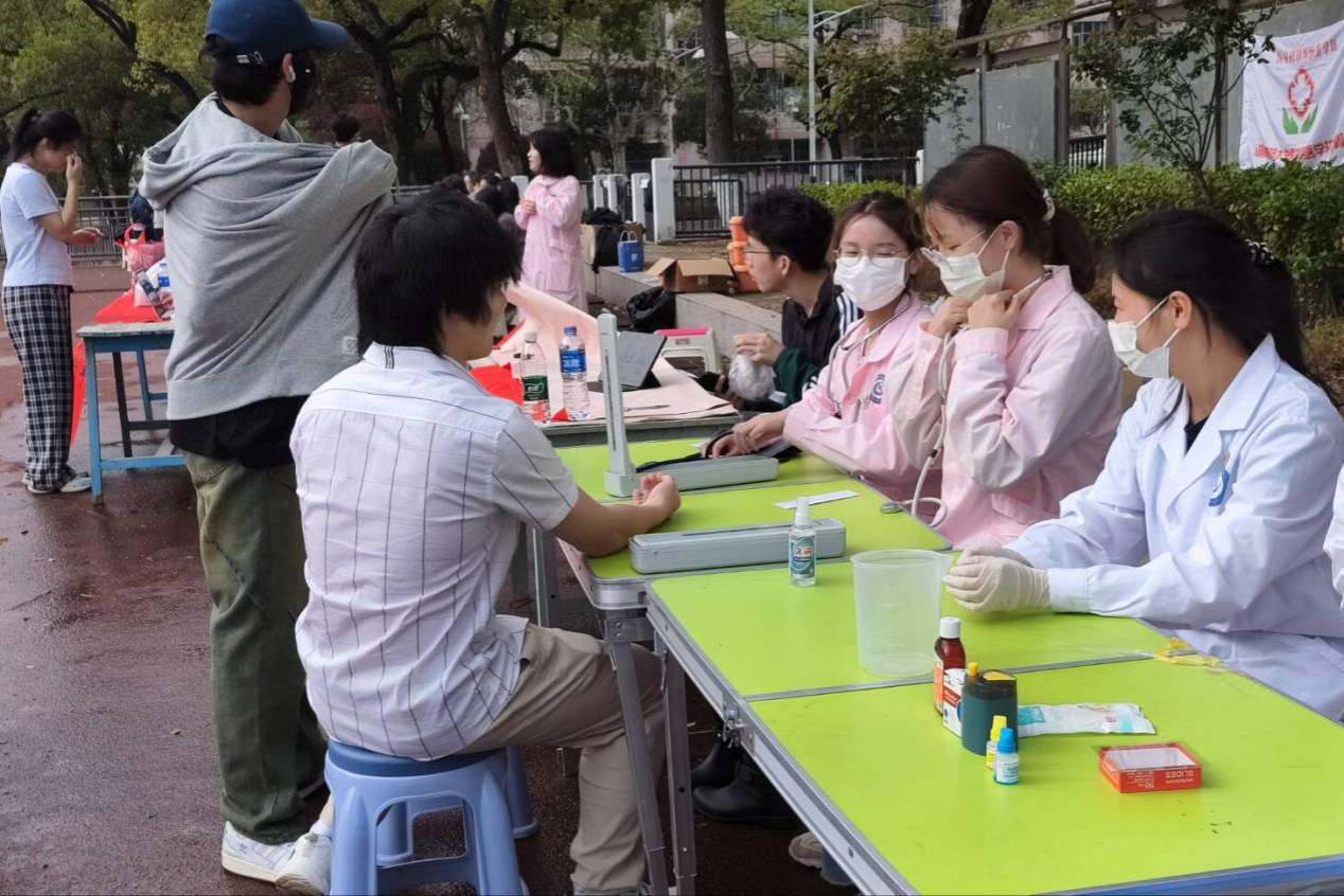 为进一步弘扬“奉献、友爱、互助、进步”的志愿精神,3月31日,金沙官网红十字会健康咨询队于咸嘉湖校区田径场开展“爱之翼,守护健康在行动”志愿服务活动,为学生、后勤工作人员免费提供测量血压、血糖和血型的服务。
