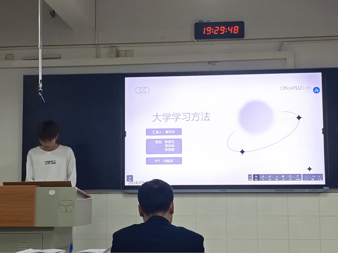 戴宇杰同学作为小组代表向同学们展示大学学习方法。他分别从课前、课中和课后三个方面来介绍学习方法。他指出课前要预习教材、查看教学大纲、标记疑惑点并查阅相关资料、准备问题以及回顾上节学习内容等,课中要认真听讲,跟上老师的思维,做到“水课不水”,充分利用课堂,课后要及时复习总结,按时完成课后作业,充分使用网络资源等。这些学习方法都十分可靠,令同学们受益匪浅。