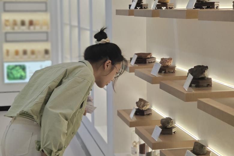 在现代中药科教馆中,许多中药材通过各式各样的标本规律陈列,同时有数字化多媒体技术开放,增加了参观过程中的互动性与趣味性,也更加形象生动地为同学们科普了中药的相关知识。同学们听着志愿者们的讲解,观看着真实清晰的标本,有秩序地参与数媒互动游戏,沉浸在中药文化的世界里,感受着其中的博大精深。