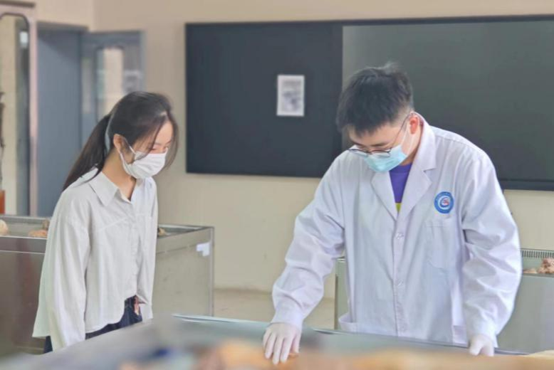 人体解剖实验室里,标本被整齐地摆放在展台上,并按照人体结构进行了细致的分类。同学们近距离地观察着人体的复杂构造,也更加了解了人体中各器官间的紧密联系。