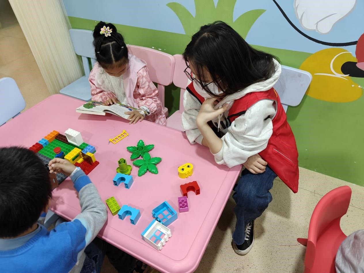 志愿者们在与医院活动负责人沟通并领取志愿服后,正式开始了志愿服务。活动过程中,为了尽快与小朋友们熟悉起来,志愿者拿出了画笔和纸,和小朋友们一起画出了各种有趣的画。很快,小朋友们便不再拘谨,主动和志愿者们玩起了积木,搭建起故事书中所描绘的场景。陪伴过程中,志愿者们温柔耐心的与小朋友们交流、鼓励他们,收获了小朋友们的喜爱和家长的认可。陪伴结束后,小朋友们将自己亲手画的画送给了志愿者们作为礼物。
