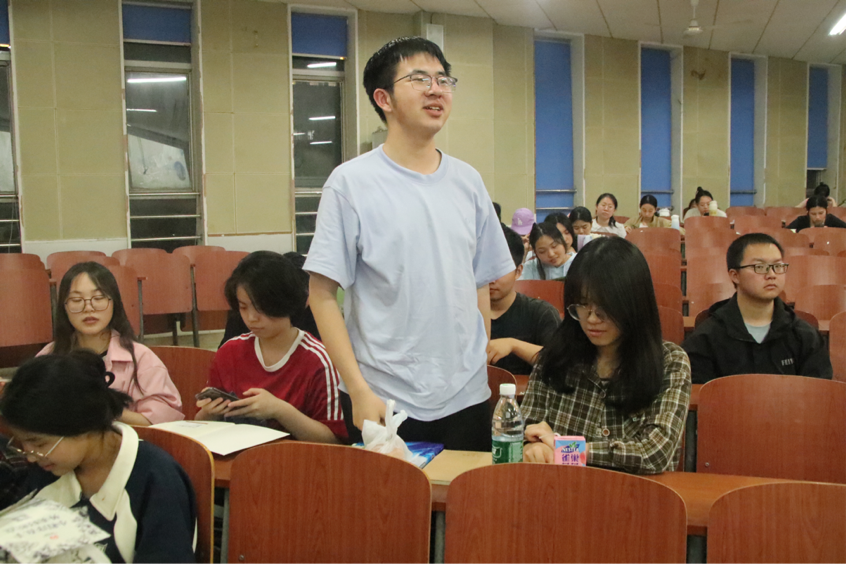主持人向大家简要介绍了主讲人吴思,并宣布活动开始。吴思首先介绍了课程计划安排,让同学们对各学期的学习科目有了整体了解。她从自身经历出发,深入浅出地分享了如何根据不同课程的特点高效学习各公共选修课和专业课,为在场的同学们提供了宝贵的学习经验和方法。在提问互动环节,现场气氛热烈,同学们积极发言,提出了自己在学习中遇到的困惑和难题。吴思耐心解答了他们的问题,并为同学们提供了解决问题的思路和途径,受到了同学们的一致好评。