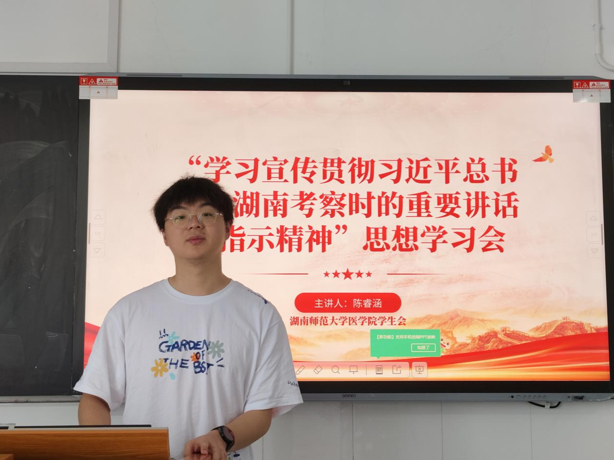 为帮助同学们树立正确的价值观,明确新时代接班人的责任和使命,4月21日晚,金沙官网学生会办公室于仁医楼105教室举办了“学习宣传贯彻习近平总书记在湖南考察时的重要讲话和指示精神”思想学习会。此次学习会由学生会志愿者陈睿涵主持,学生会全体成员参加。