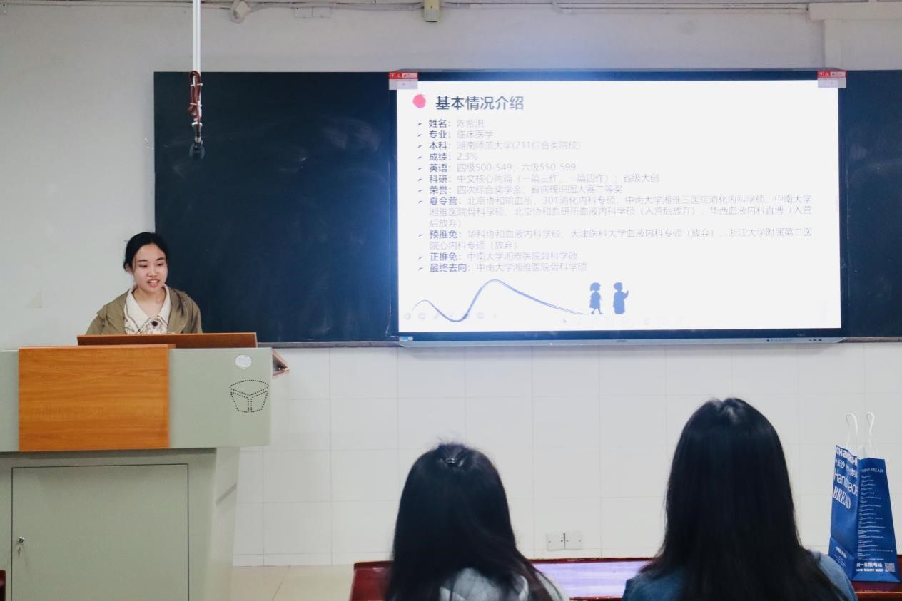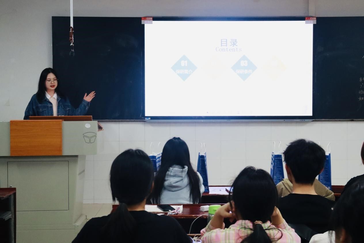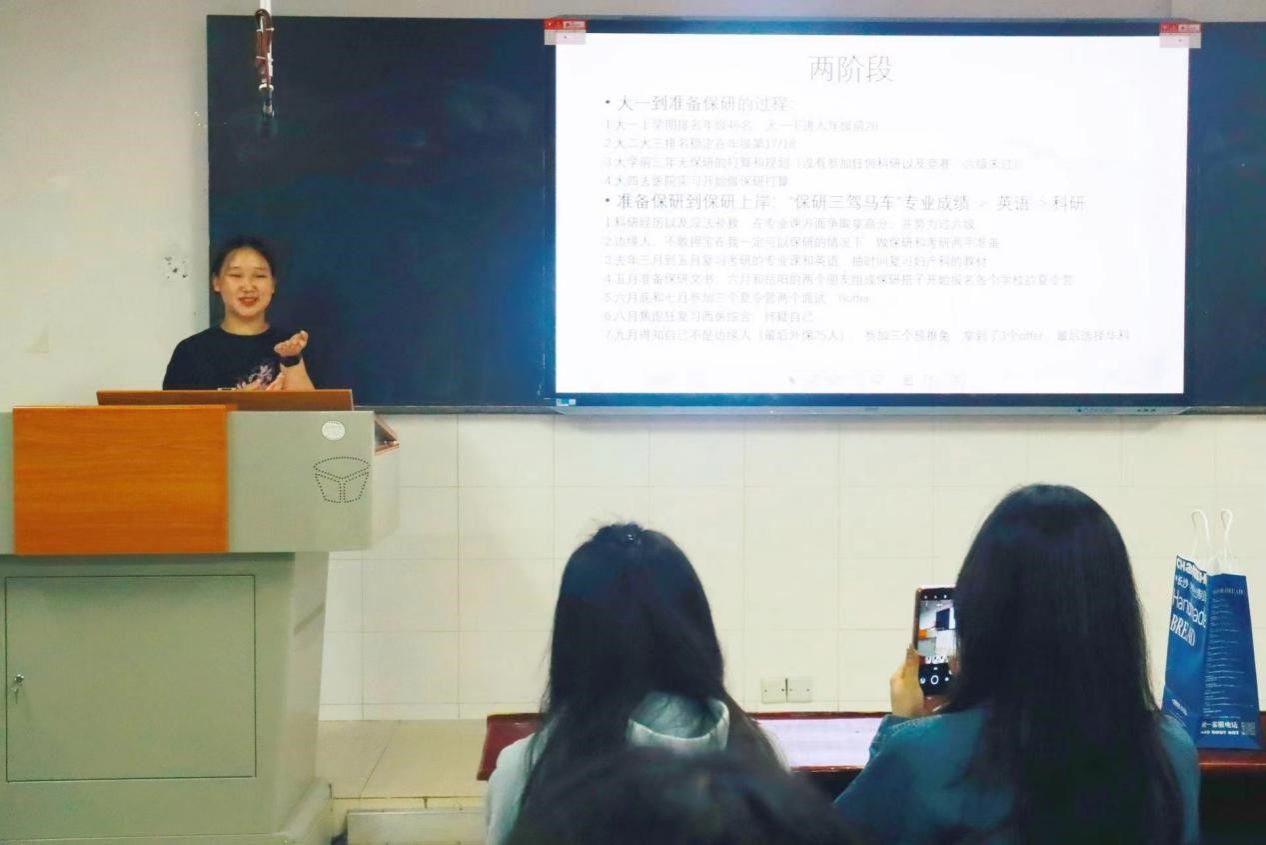 何含婷结合自身经历,为同学们详细介绍了保研的流程和保研所需条件。作为在校期间的专业第一,何含婷分享了学习方法,特别强调课后复习的重要性,向同学们推荐了“翻书三遍法”,一遍看重点,二遍看细节,三遍通看,旨在不断熟悉所学知识。