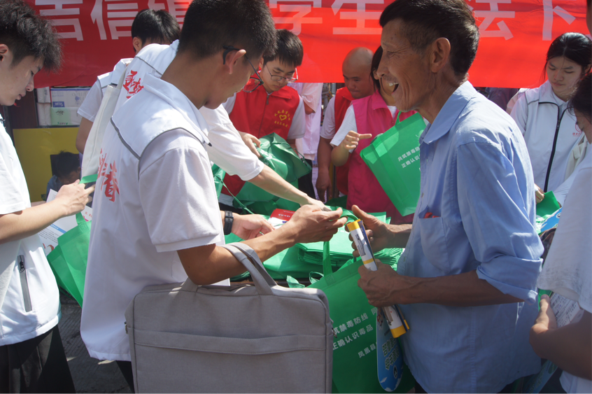 7月10日上午,我校“逐梦青春”三下乡队伍受邀前往吉信镇集市,与吉信镇团委联合司法所、应急办携手开展“送法下乡,普法宣传”活动。