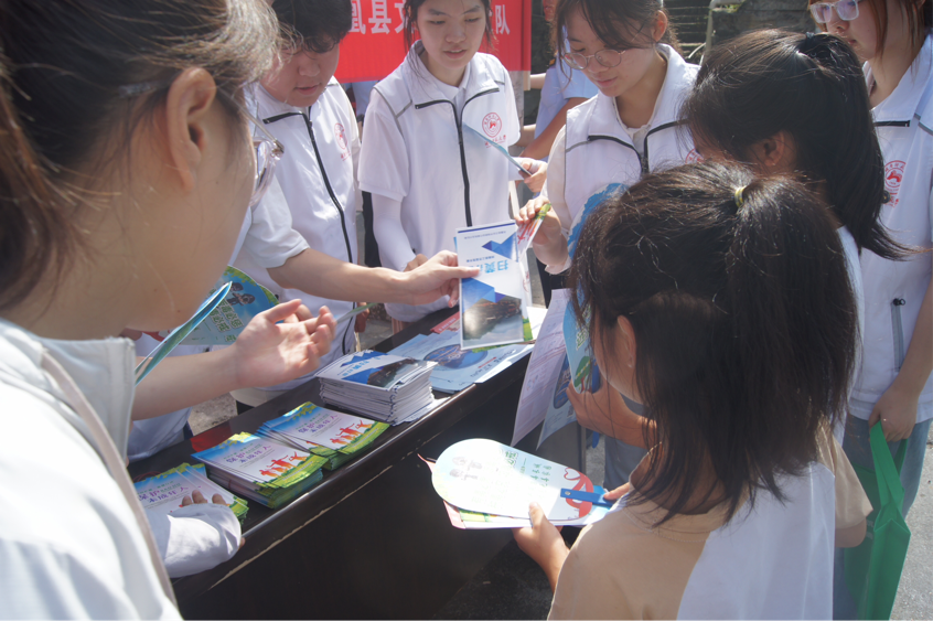 “逐梦青春”队伍在集市街口与政府协同设立了普法宣传点,通过发放未成年保护法宣传手册、普法禁毒扇子等宣传资料以及现场讲解等方式,向过往群众普及相关法律知识和安全常识;宣传政府扫黄打非的工作成果并展现政府打击违法犯罪行为的决心。活动中,双方齐心协力,以饱满的热情向群众普及法律知识,引导大家树立正确的法律观念,了解法律规定和权利义务,增强法律意识,学会运用法律武器维护自己的合法权益,并积极主动地抵制违法犯罪行为。