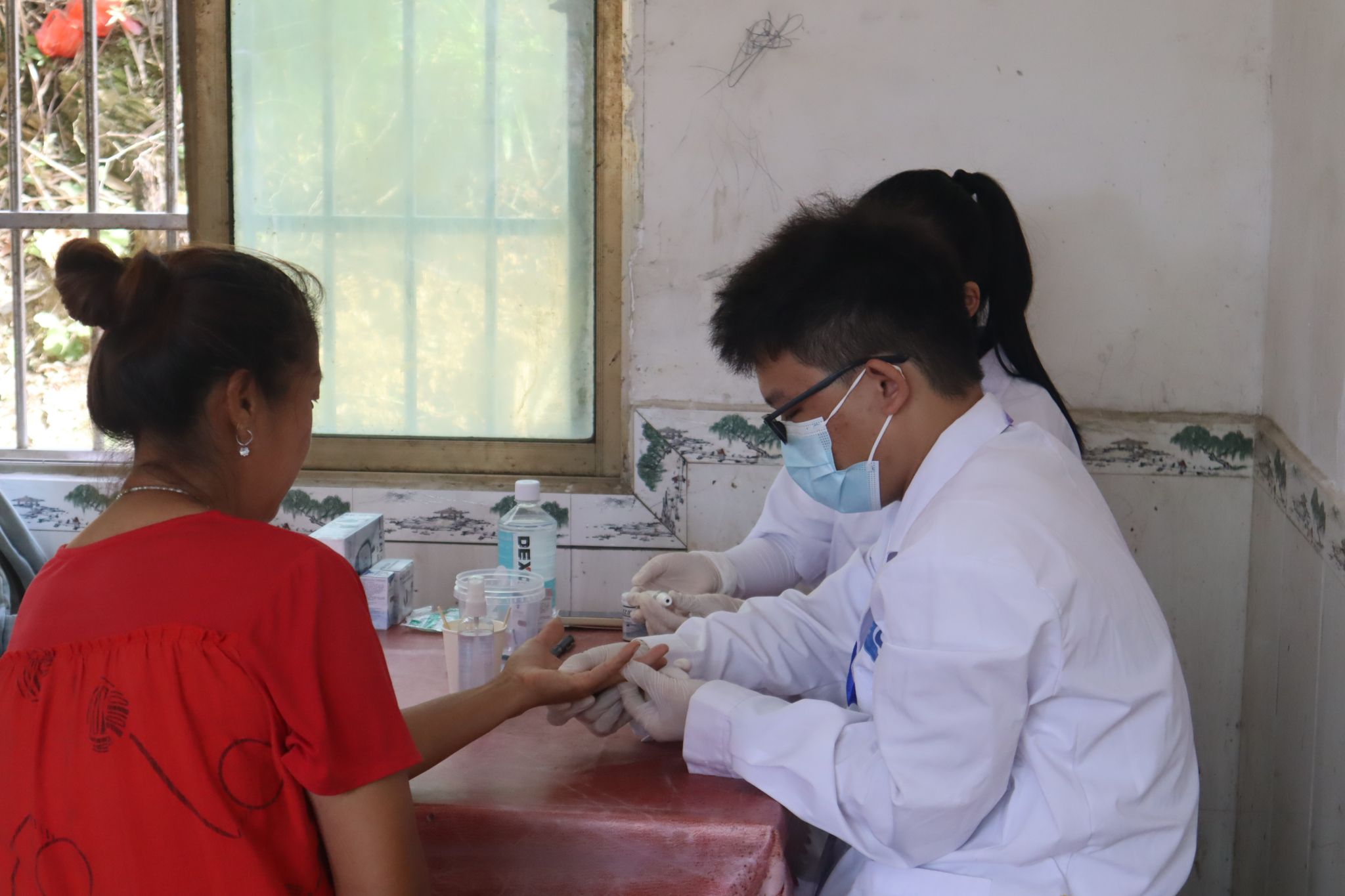 志愿者们提前到达嘉达村进行场地布置和仪器准备,等待村民们前来。此次义诊面向嘉达村全体村民,无偿为其测量血压、血糖、视力及身高体重,提供推拿服务和健康咨询。活动过程中,志愿者们耐心地与村民们沟通,询问村民们的身体情况,结合实际测量结果有针对性地向他们提出一些建议,以帮助他们改善自身的健康状况。此外,实践团成员们也真实地记录了测量结果,作为认识当地基层健康状况的重要数据。