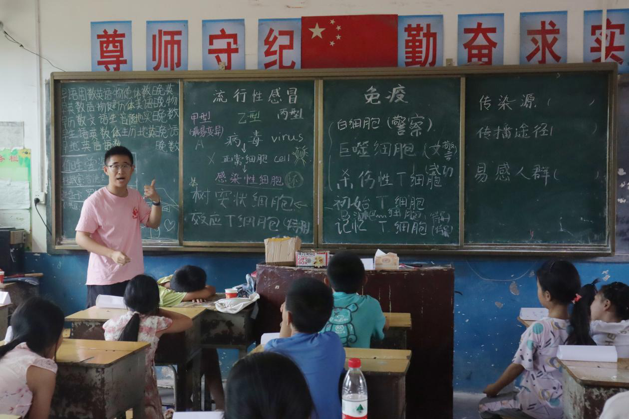 为助力乡村儿童教育的发展,7月16日,金沙官网“医路乡随”暑期社会实践团在凤歧坪乡中学二楼教室开展自然科普和传统文化课程。