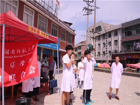 为广泛普及社区居民健康教育知识,提高他们的防病治病意识,正确对待和处理常见疾病,7月27日上午,趁着当天是白玉片区村民的赶集日,金沙官网赴绥宁白玉片区暑期社会实践团全体成员于白玉学校举办健康宣讲活动。