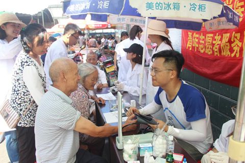 活动伊始,有部分赶集的村民前来询问活动目的,得知是健康咨询后,村民纷纷赶来进行测量,想得知自己的基本健康状况。实践队队员们都耐心的帮助村民测量,尽量做到把误差降到最小,测量完后队员们为村民提供饮食和生活方面的建议,力求帮助村民改善高血压、高血糖或是低血压、低血糖的情况。队员们从村民的口中得知,村民们大多都不清楚自己的血压、血糖的各项指标,也不会定期的去卫生院检查自己身体状况,只有到身体上的问题严重影响到自己生活才会去看医生。村民们对实践队的到来表示感谢,队员们提供的基本的健康咨询也给村民带来了实质性的帮助。.
