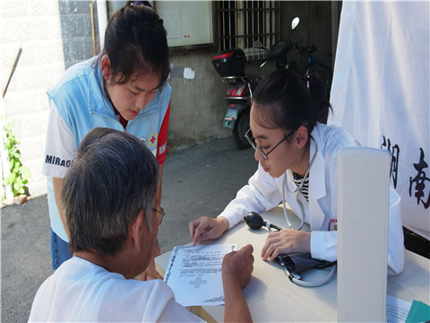 7月16日早,金沙官网红十字会赴长沙暑期社会实践团分宣传组和义诊组前往金星社区进行健康咨询活动宣传及居民血型血糖血压的测量。