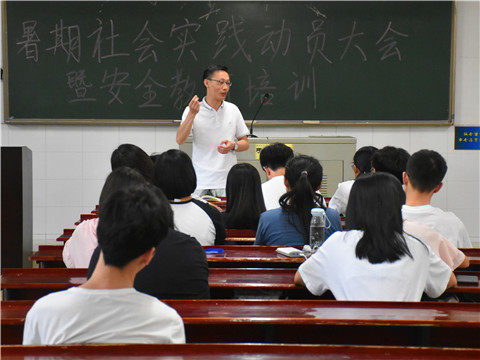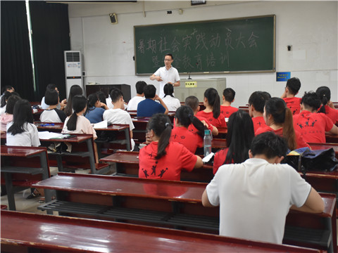7月11日上午,金沙官网三支暑期社会实践团队于仁医楼103教室开展三下乡动员大会暨安全培训会。院党委副书记谢罗庚,院团委书记李强出席会议并进行动员、安全教育。