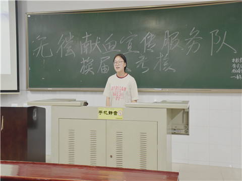 活动伊始,王慧敏、张余映东、郭慧聪等老队员依次上台分享经验与心得,第一届无偿献血服务队队长张慧敏表示,这属于一支新兴队伍,需要大家用心对待,无偿献血十分有意义,希望各位新队员能认真对待此服务队的每一件事,也希望大家能在这支队伍中提高自己处理事务的能力,将无私奉献的精神传递下去。新队员也表示会努力奋斗,不负大家的期望。邢运新也分享了自己的献血经历,同时介绍了服务队的工作内容,在PPT上向队员展示了献血流程及知识。