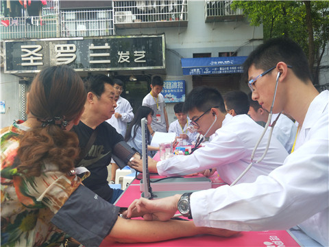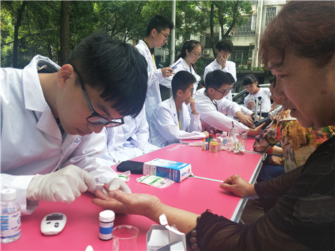 此次活动是为新民路社区的居民提供免费的血压、血糖、血型测量,并根据居民的实际情况提供改善健康状况的建议。在义诊过程中,来义诊的多为血压或血糖较高的老人,健康咨询队队员在耐心的询问老人们的过往病史及其生活饮食习惯后,依照所学知识对其生活习惯及饮食给出适当的建议。活动中,队员们积极宣传清淡饮食,少食用高热量高糖高盐类的食品,以定量的运动配合足够的睡眠缓解疲劳,增强体质,调节生理机能和各系统平衡。