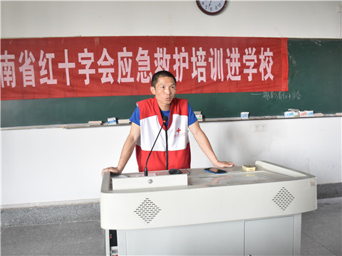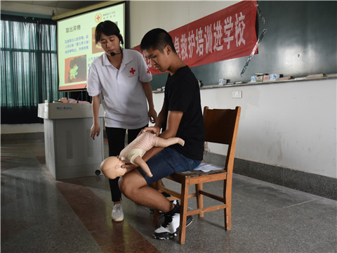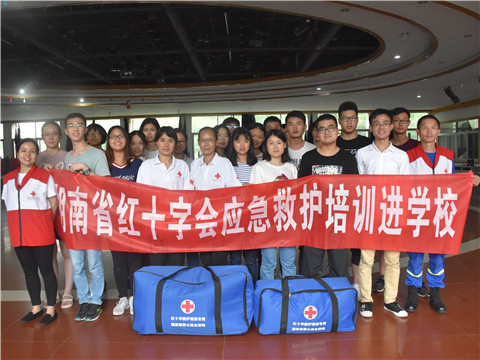 上午为理论教学,在理论教学前负责人给同学们播放了红十字会宣传片,此宣传片介绍了红十字会的来源。随后培训员从救护新概念、意外伤害、创伤救护、心肺复苏四个课题进行了紧急救护知识的讲解。其中,救护新概念的特点是依靠第一目击者,强调第一目击者不等于第一个看见的人而是做出及时、合理救助的人,意外伤害课题强调要正确掌握救护原则,创伤救护中培训员讲解了五中止血方法以及包扎方法,理论教学最后全面培训了关于心肺复苏的知识和其操作方法。下午为实践教学,蓝天救援队队长金灿带领队员手把手教学生在伤口情况不同时用适当的方式包扎、手骨折时如何简单固定,以及心肺复苏。