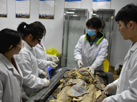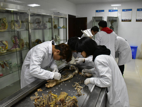 2018年4月14日下午,js555888金沙老品牌于至谨楼形态学实验室举行第一届解剖兴趣小组标本制作大赛,宋坤老师指导操作。