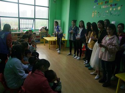 到达目的地后,老师提醒了志愿者们相关注意事项,带领志愿者们进入教室与小朋友们打招呼,随即志愿者们献唱了一曲《青春修炼手册》,营造快乐活跃的氛围,在老师的鼓励下,小朋友们也学着他们挥舞着手。志愿者们主动牵着小朋友的手做游戏、画画,在“拉个圈圈走走”游戏过程中,志愿者们与小朋友们转圈,拥抱,他们对游戏充满兴趣,还带着志愿者去玩他们的玩具,会画画的志愿者边与其交流边手把手教他们绘图。最后,志愿者们告别了小朋友并与其合影留念。