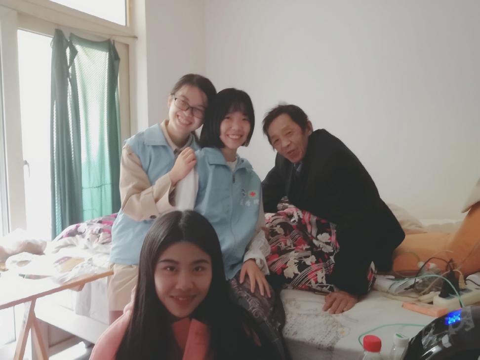 精神慰藉分为心灵疏导、陪同散步、探望和慰问四大部分。康复护理主要是为老人测量生命体征,为其保健按摩。在与社区里的老人谈心时,易爷爷讲述了侄女的故事和自己年轻时的往事,志愿者们与他交谈得十分融洽,同时志愿者们也从讲述的故事里收获了很多成长和经验。