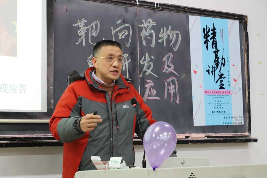12月7日晚19时金沙官网团委青年创新创业工作部主办的精勤讲座之“靶向药物的研发及临床应用”于勤医楼七教室举行。杨小平教授担任此次讲座主讲人。