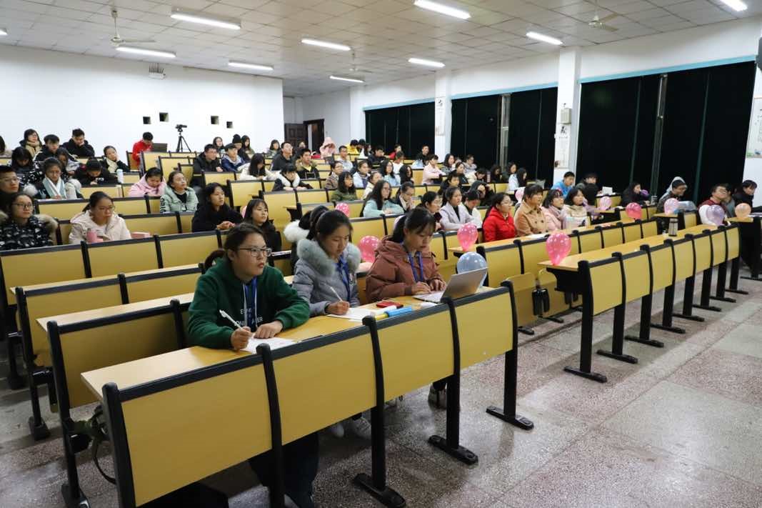 主持人蒋静雯对主讲人进行简短的介绍之后,杨小平从靶向药物研究“应该干什么,怎么干,该往哪个方面着力”开始讲课。他主要从靶向治疗药物的概述、靶向药物分类及代表药物简介、分子靶向药物面临的问题和常见肿瘤靶向药物选择等靶点检测四个方面向观众讲解了相关知识。活动中,杨小平举肿瘤病人脱发的例子说明了传统化疗的缺点,并通过《我不是药神》这部电影让观众对格列宁这一靶向药物的印象更深刻。同时,他还以女星安吉丽娜朱莉为例让观众对乳腺癌有了清晰地认识。他最后表示:“绿水青山就是金山银山,通过保护环境能使疾病的发病率降低,这就需要同学们努力学习,使国家富强,营造好环境友好型社会。”