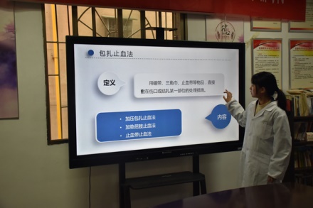 当为居民测量血压后,志愿者询问了居民的饮食及运动习惯,以便了解居民血压高低的原因,给居民提供一些针对性的建议。测量完毕,志愿者集合了居民,播放提前做好的课件,讲师团为居民讲解了有关健康的知识,对于生活中遇到的一些情况,讲授了常用的止血包扎的各种方法,比如指压止血法,包扎止血法等。活动最后,志愿者合影留念。
