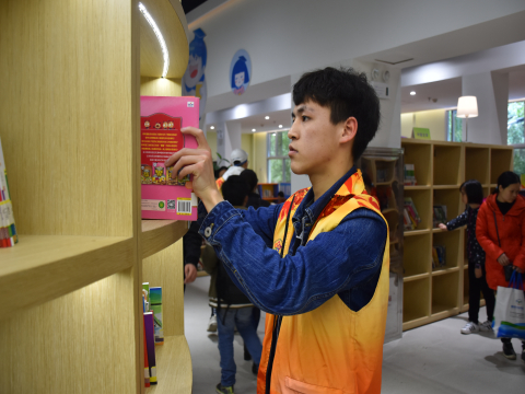 志愿者们在活动负责人苏延凯的带领下,于湖南省图书馆大门集合。志愿者们分为未成年组、综合组、中文参考组和老年组。由于是周六假期,儿童阅读者数量多于平常,出现了拿不到书籍、不知如何借阅书籍等的情况,所以未成年组的志愿者在特定区域守点,以便及时帮助他们,并将书架上的错乱的书籍按高低排好。综合组和中文参考组的志愿者主要负责整理书籍,擦拭书架上的灰尘,将移动还书箱中的书籍放回原处。老年组的志愿者则协助老人借书还书。部分志愿者穿梭于电子浏览室、展览厅、借阅室等地区进行垃圾纸屑搜索并清理。