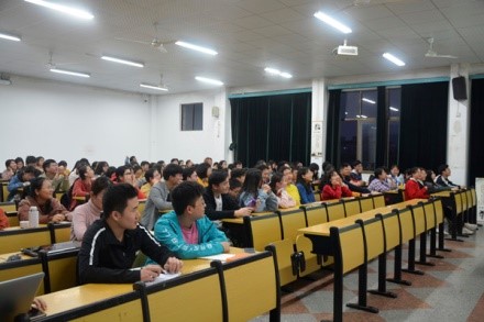 主持人唐小涵宣布讲座正式开始,主讲人廖楚庭上台演讲。