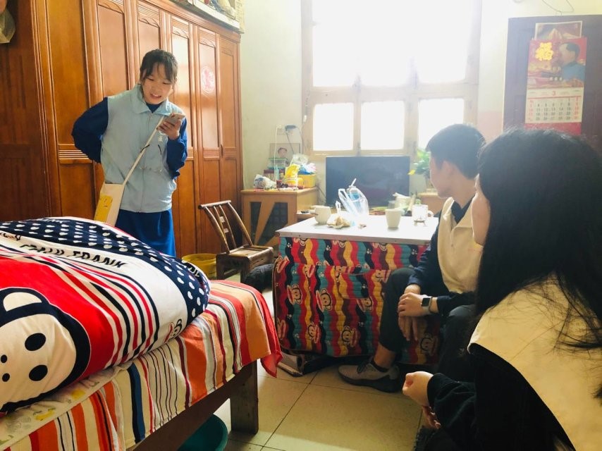 在活动负责人的带领与指导下,金沙官网12名志愿者在到达服务地点后,即有条不紊地开始自己的服务工作。志愿者根据服务内容被分为三组,第一组志愿者与陪伴对象进行过简单的交流后,为其阅读报纸、拉话家常并且进行心灵疏导;第二组志愿者则替陪伴对象完成部分生活日常照料,为其清洗衣物、代购生活用品、送餐并负责取送所需药物;此外,最后一组志愿者不仅为陪伴对象测量日常生命体征、陪同他们完成康复训练,还为他们做保健按摩,确保他们的生命体征处于正常范围内。