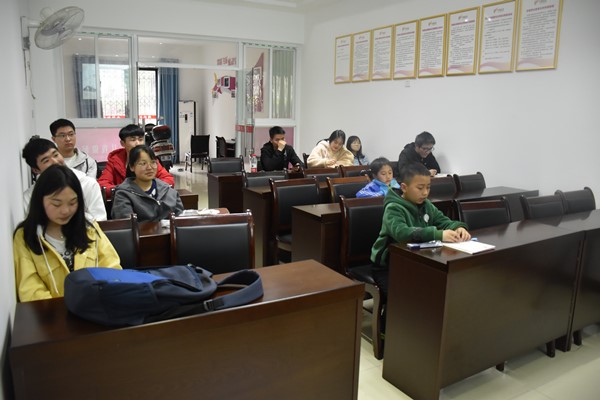 3月31日下午两点半,由金沙官网青草园文学社举办的“清风化雨,国学永驻”志愿者活动于天凤社区公共服务中心举行,天凤社区的孩子们与金沙官网志愿者参加此次活动。