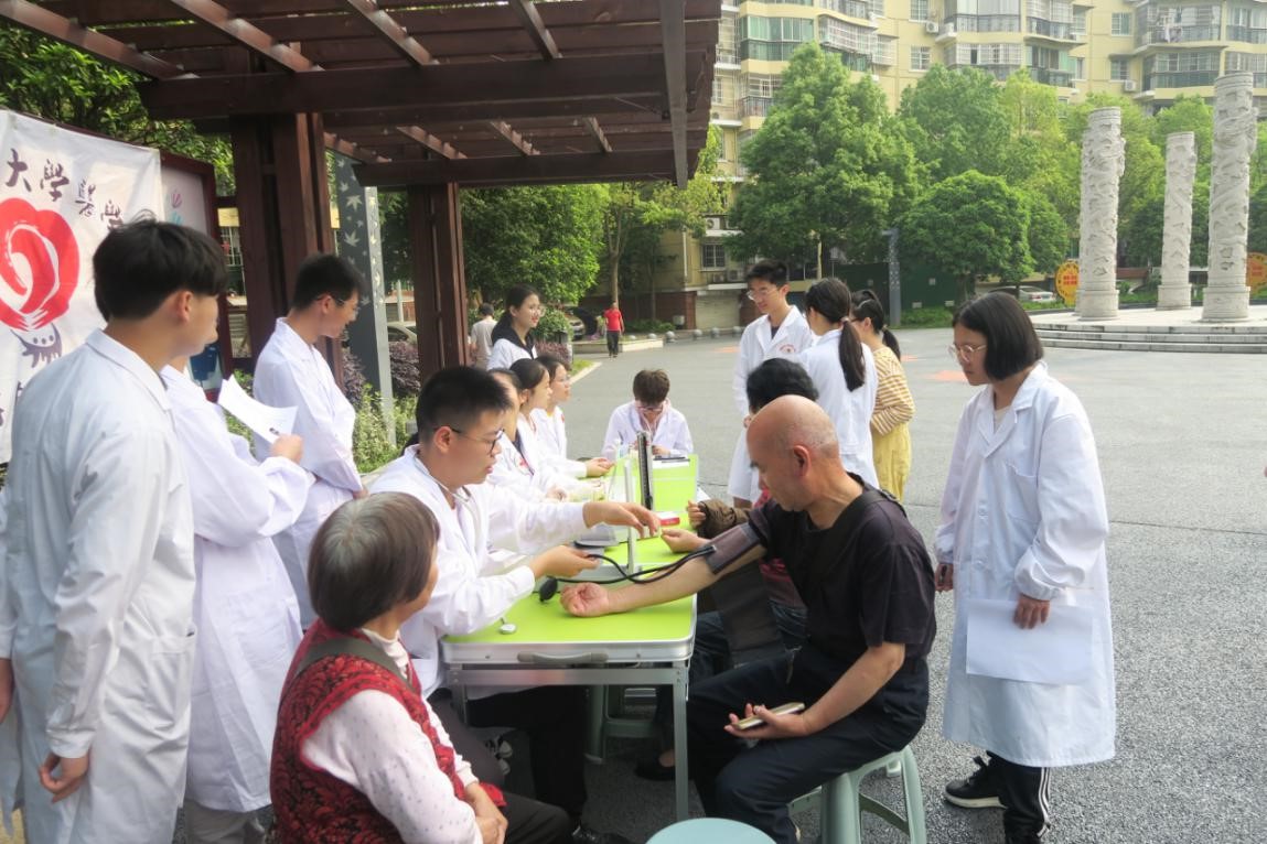 5月12日上午九点,由金沙官网团委青年志愿者工作部举行的“爱之翼,守护健康在行动”志愿者活动于龙王港社区开展,部分健康咨询队成员参与此次活动。