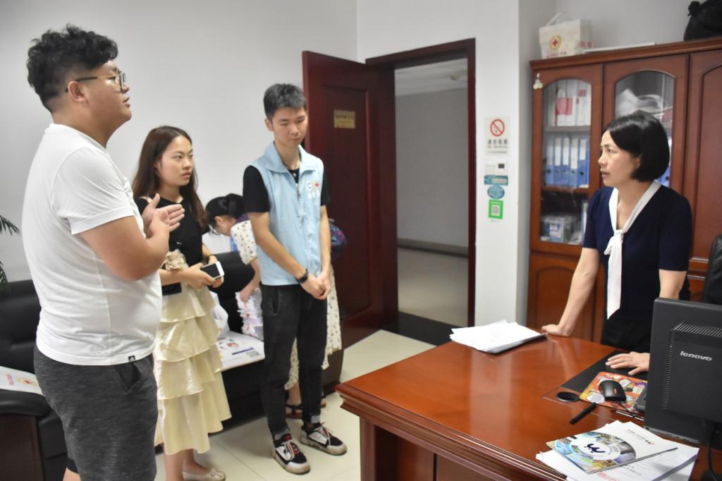 7月11日上午,金沙官网红十字会秘书长刘浩及“天使在人间”暑期社会实践团队长刘乔,副队长范宇豪、郭嘉仪及后勤组组长杨煜烨赴长沙市政府红十字会办公楼与红十字会救护培训处处长吴林梅展开谈话,共同商讨金沙官网三下乡相关事宜。