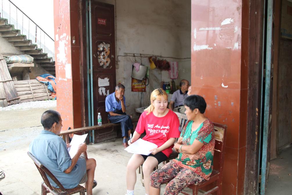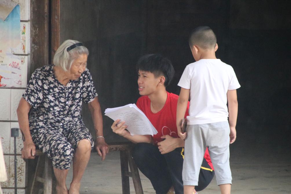 三下乡队员们分成八个小组,分别前往留守儿童家中进行调研。队员们克服交流障碍,在与留守儿童及其家长的交流中,了解到留守儿童的生活起居、在校学习情况和心理健康情况,及其监护人对于培养留守儿童的态度和对于解决留守儿童增多问题的方法。