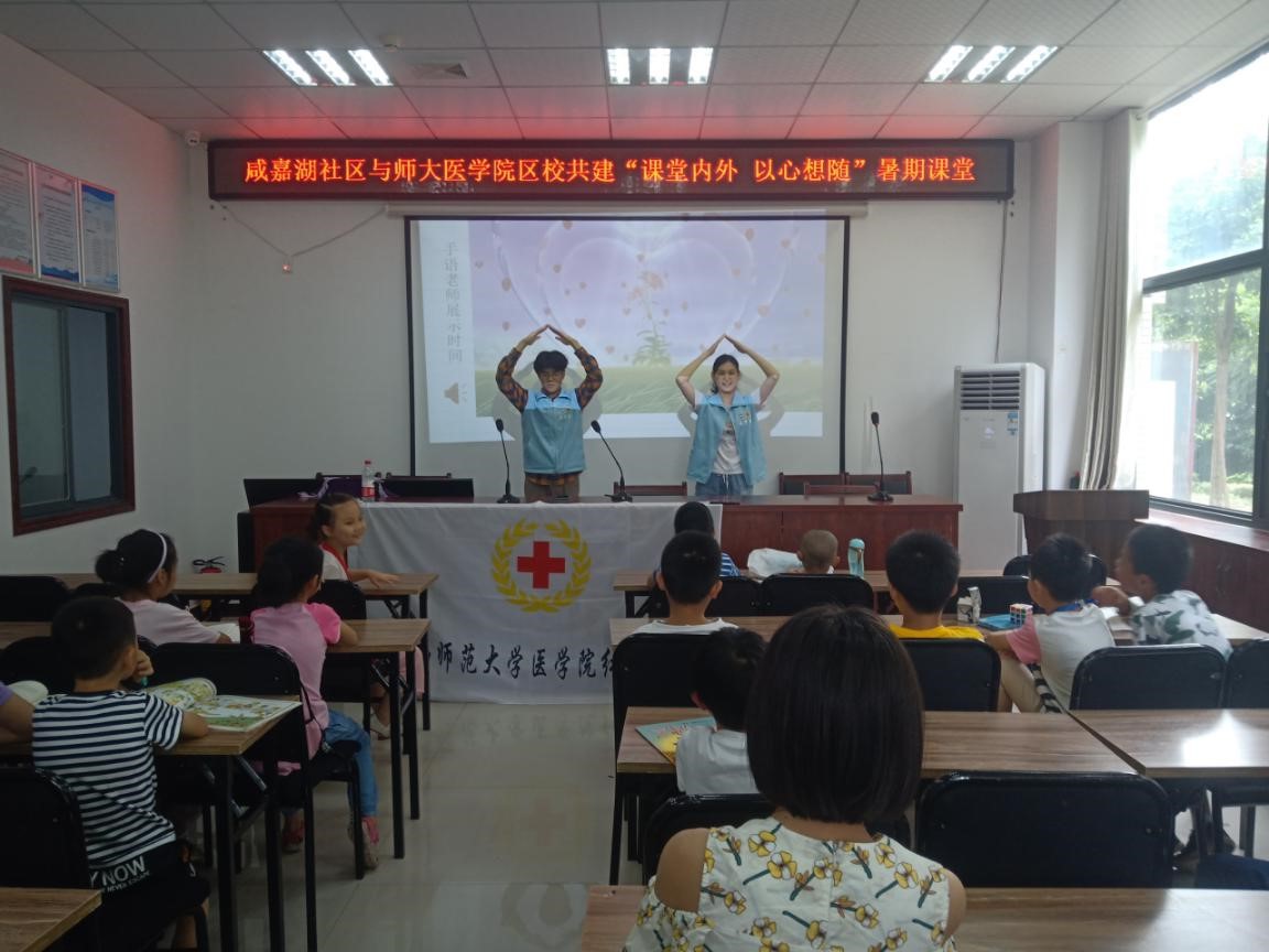 7月15日上午,金沙官网与咸嘉湖社区区校共建“课堂内外,以心相随”暑期课堂正式开课,红十字会赴长沙市暑期社会实践团于咸嘉湖社区进行开学典礼暨主题班会,班主任陈明珠担任主持人。