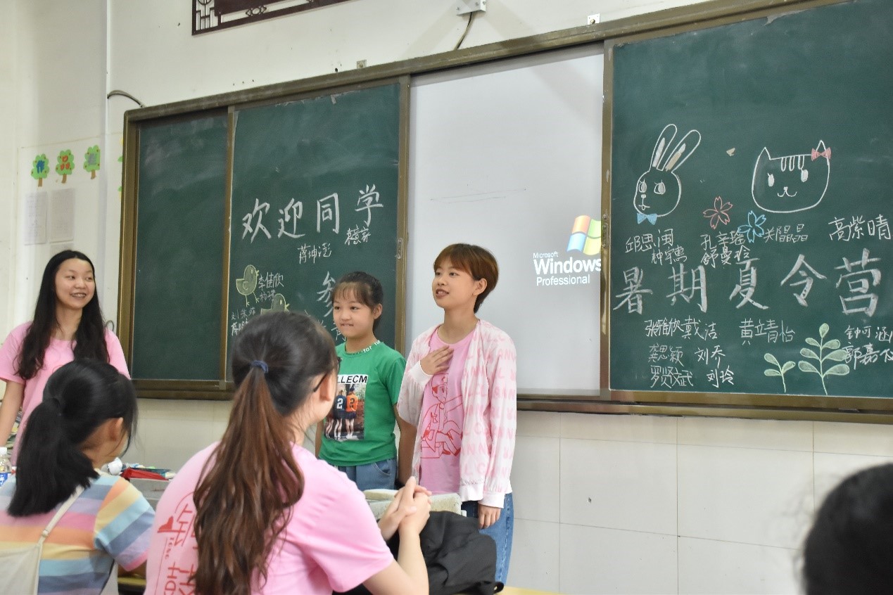 见面会中,支教组组长戴洁首先进行了暑期三下乡支教活动的首次点到,队员和支教学生按照顺序依次对应,并选完座位一起坐好,在一对一的短暂交流之后,每组搭档先后自我介绍,在介绍中有教学任务的队员亦表演了自己准备的小节目。随后进行的班委选举中,支教学生踊跃竞争,充分表现了自己的特长,最终全体班级学生投票选举,选定四名班委,分别是班长曾维金,纪律委员龚思颖,学习委员张雅欣,文体委员邱淑菲。