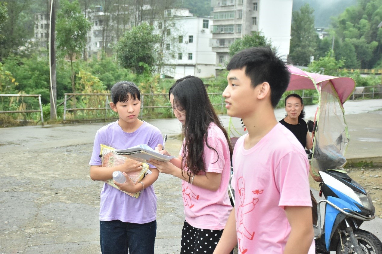 早晨,支教组组员携花名册赶往学校门口迎接支教学生,其余队员于多媒体教室打扫卫生整理桌椅,以确保学生安全到达学校,并且拥有一个良好的学习环境。