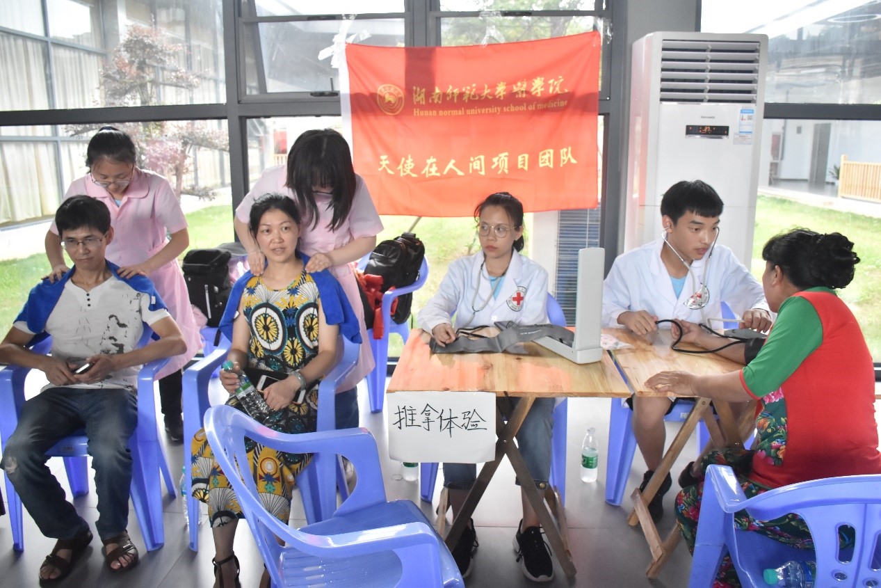 体验馆内,健康咨询组成员身穿白大褂或护士服为来往人民进行血压测量或推拿体验服务,一些爷爷奶奶欣然前往咨询处进行血压测量,接受学生们针对个人血压情况提出的相关健康生活建议,而泼水节玩耍后劳累的群众来到推拿体验处体验推拿,推拿完后都对成员们表示感谢。支教组的成员不忘自己的职责,乘着泼水节人流量大,手拿问卷开始调研工作,与过往的民众交流,了解相关本组调研主题的情况。