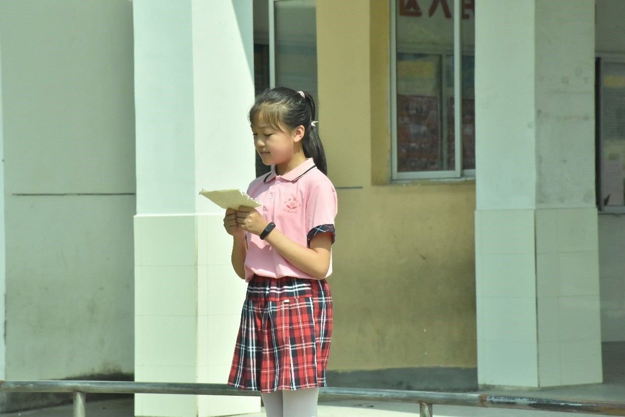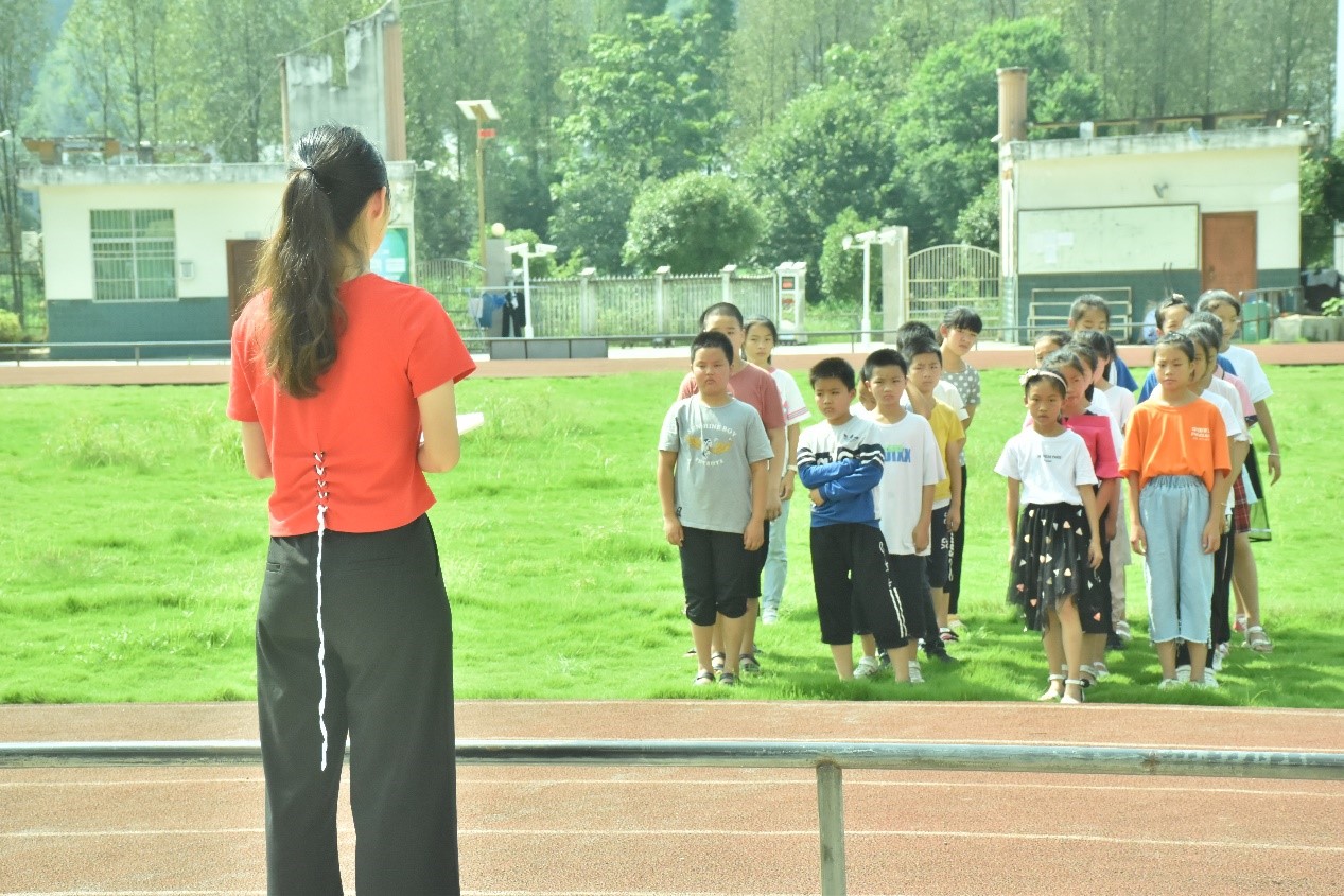 清晨,学子们陆陆续续来到大塅镇中心小学开始一天的课程。课间操时间,支教组老师带领二十二位学子来到操场,并按队形站在国旗下方,升旗仪式正式开始。随着乐声响起,四位旗手拿着国旗进场,全体肃立,五星红旗冉冉升起,庄严激昂的国歌声奏出,少先队员敬上队礼,仪式顺利进行。随后,学生代表邱淑菲做国旗下讲话,邱淑菲以“做遵章守纪的小学生”为主题,呼吁大家遵守校纪校规,争做文明守法的小学生。最后支教组组长戴洁于国旗下做总结,她首先提出“习惯决定人生”的观点,针对三下乡期间孩子们的表现,总结出孩子们具有早晨读书、预习课程、专心听讲等好习惯,而同时也有个别学生养成了迟交作业的坏习惯,并呼吁大家要保持良好的行为习惯,改掉对自身发展有害的习惯,做一名优秀的学生。