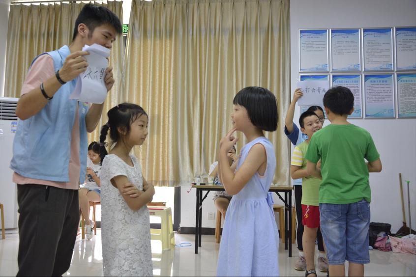 运动会开始,此次运动会以接力赛的形式展开,依次为翻江倒海,你画我猜,绕口令三个环节。首先由小朋友们自行组队并分配好各自的任务,裁判们也在第一时间站到了接力赛的赛点。其中,翻江倒海这一环节需要把半扣在桌面上的五个纸杯进行翻转,这对力度的掌握有很高的要求,小朋友们在进行这一环节时普遍比较紧张,但最终还是完成了任务。绕口令环节里小朋友沉着冷静,大部分都是一口气念完了一整句,整体提高了这一队伍所用时间。运动会结束时,取得胜利的队伍将会赢得志愿者准备好的小礼品,这在比赛过程中起到了鼓励的作用,因为每一个小朋友都积极地参与其中,于是最后他们都领到了一个小奖品。