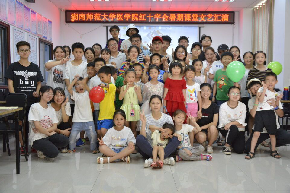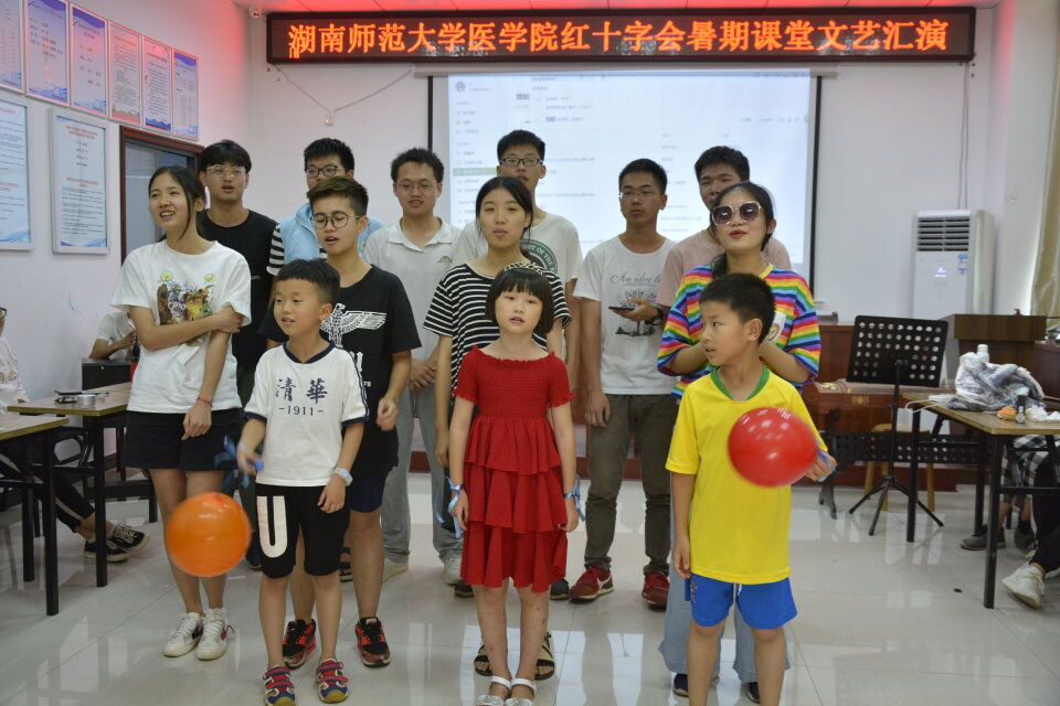 7月26日,金沙官网红十字会暑期社会实践团于岳麓区咸嘉湖社区公共服务中心举行暑期课堂成果文艺汇演,金沙官网红十字会暑期社会实践团、社区主任、全体支教学生和部分家长参与此次汇演。